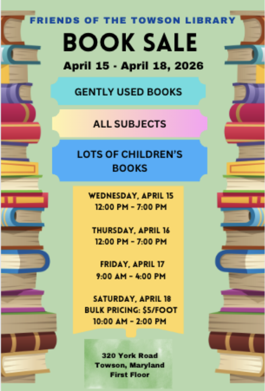 Welcome to the online home of the Friends of the Towson Library! Browse our site to learn more about the Friends, join us in supporting the Towson library, or learn about upcoming events we’re sponsoring at the branch.